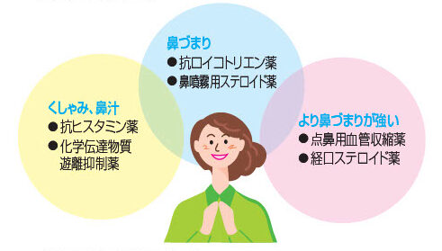 - ● 鼻粘膜の状態を良くするように、悪化の因子であるストレス、睡眠不足、飲みすぎなどを抑えることが必要です。軽い運動などは花粉防御をしたうえでは推奨されると思われます。セルフケアと医師よる治療を含め、花粉症の季節を快適に過ごせるよう努力してみてください。