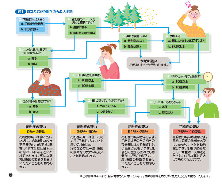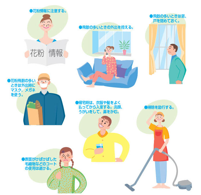 - ● 花粉情報に注意し、花粉飛散が多いときには無駄な外出は避けるようにしてください。