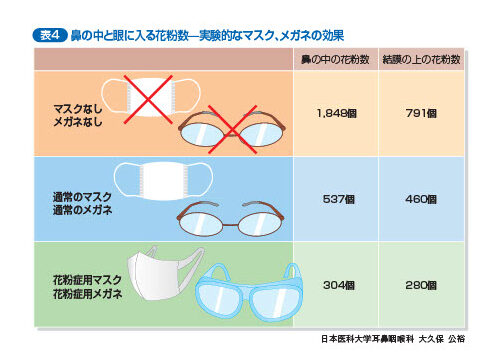 - ● 花粉症用のマスクでは花粉が約1/6、花粉症用のメガネでは1/4程度に減少することが分かっています。